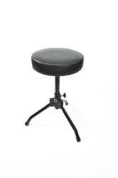 Podwyższony stołek dla perkusisty o regulowanej wysokości z grubym, miękkim siedziskiem wykonanym ze skóry ekologicznej.